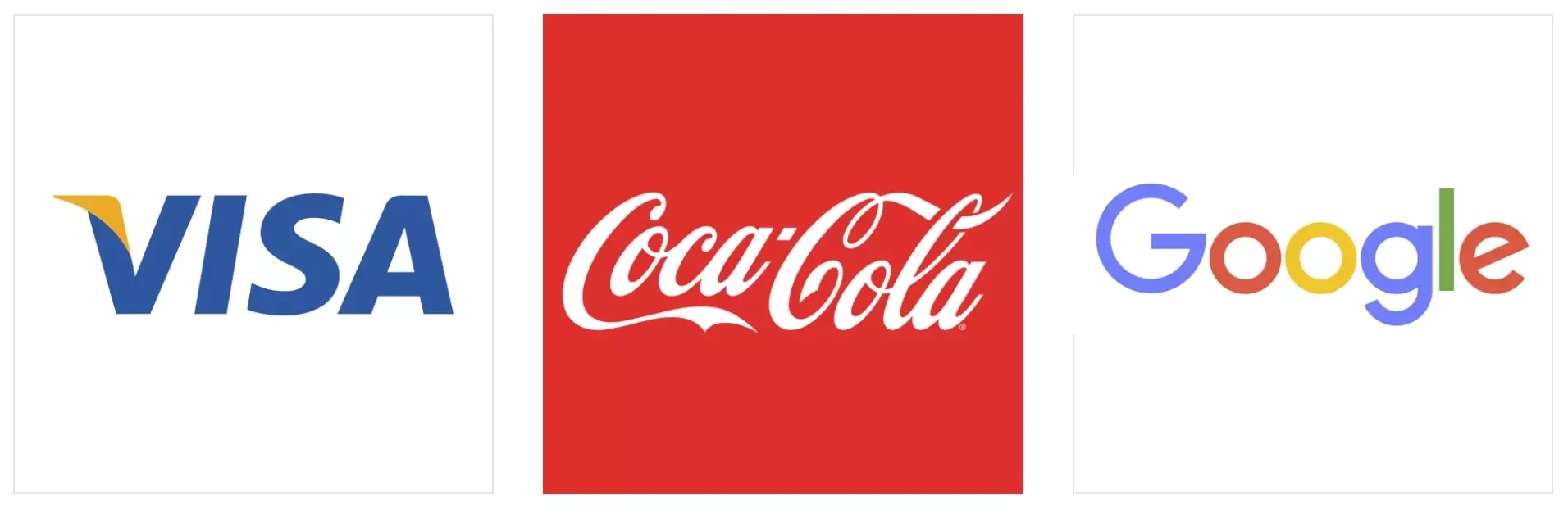 与字母标志类似,文字标志是一种基于字体的标志,只关注商业名称。比如说:可口可乐、VISA,当一个公司有了一个简洁而独特的名称时,文字标志传播的效果非常好。谷歌的标志就是一个很好的例子。这个名字本身很吸引人,令人难忘,因此,当结合强烈的排版时,该标志有助于创造强大的品牌认知度。