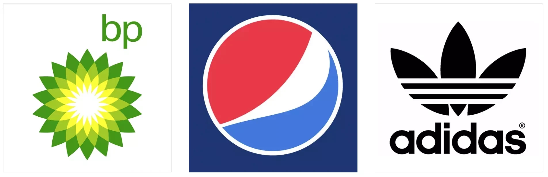 抽象标志是特定类型的图形标志。它不是一个可识别的图形,如苹果或鸟 - 它是一种代表您的业务的抽象几何形式。例如:BP、starburst-y标志、百事、阿迪达斯,与所有标志符号一样,抽象标志的效果非常好,因为它们可以将您的品牌诠释成一个图像。然而,抽象标志不是仅限于可识别的图片,还可以创建真正独特的东西来代表您的品牌。